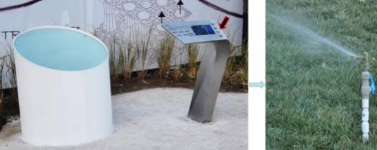 太陽能傘利用最新“薄膜發(fā)電”技術(shù),12W大功率柔性薄膜太陽能芯片產(chǎn)生的電能,可同時給10部手機(jī)“無線充電” 智能水簾可以實時報時間
