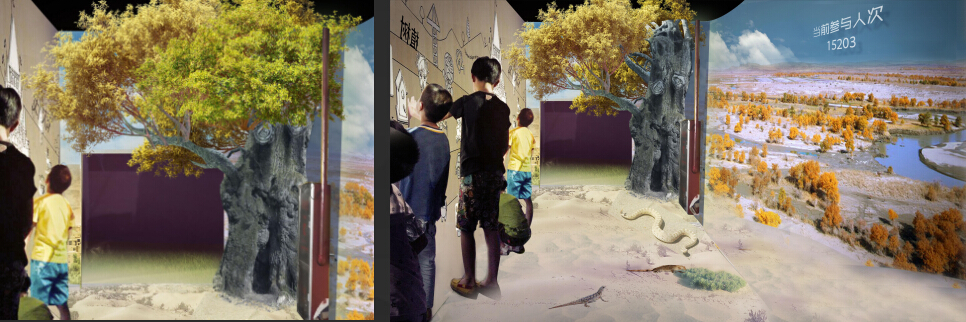 創(chuàng)新應(yīng)用場景商業(yè)體內(nèi)的創(chuàng)新文旅+夜游項目。雨林仙蹤。三個雨林階段的背景循環(huán)更替,動物被踩出來后向館內(nèi)跑去,引導(dǎo)游客前進(jìn)。 精靈全息劇場