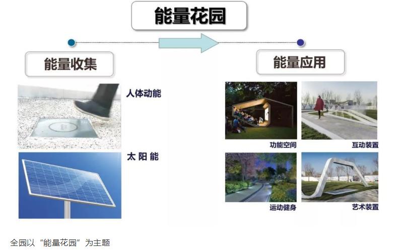 能量花園系統(tǒng),能量來源為純凈的人體動能和太陽能。 在園子中走路都在為園子發(fā)電為它積蓄能量,儲存起來的電能應(yīng)用于全園的各項設(shè)施,人體動能發(fā)電的主角就是集電地板。