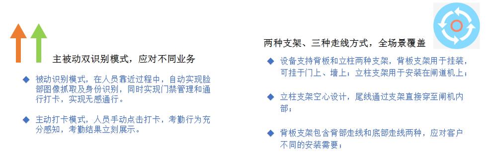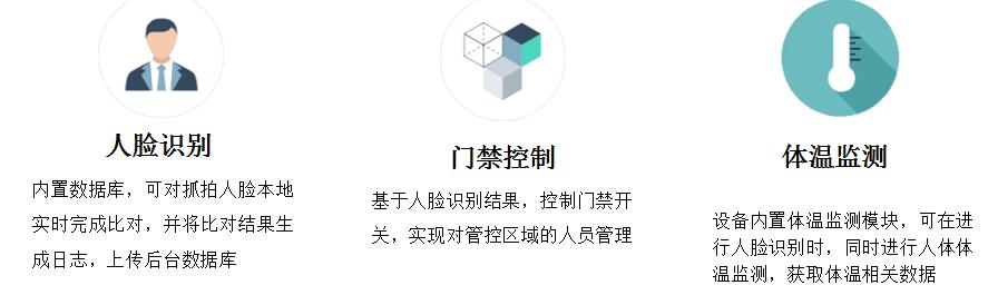 投石智能系統(tǒng)溫度檢測(cè)人臉識(shí)別設(shè)備,用于被考勤人員進(jìn)出園區(qū)管理及打卡考勤。被考勤人員在進(jìn)場(chǎng)、離場(chǎng)時(shí),按照設(shè)備使用規(guī)則,通過識(shí)別設(shè)備,在設(shè)備上進(jìn)行人臉打卡操作,并配合對(duì)閘機(jī)或門禁設(shè)備的開門控制,實(shí)現(xiàn)對(duì)園區(qū)的人員出入管理。 同時(shí),該設(shè)備配備溫度檢測(cè)儀,可在進(jìn)行人臉識(shí)別的同時(shí),對(duì)被識(shí)別人進(jìn)行體溫監(jiān)測(cè),獲取人員的體溫信息,從而判斷該人員是否生病、有無健康問題,可廣泛應(yīng)用于醫(yī)療衛(wèi)生領(lǐng)域。 核心功能:
