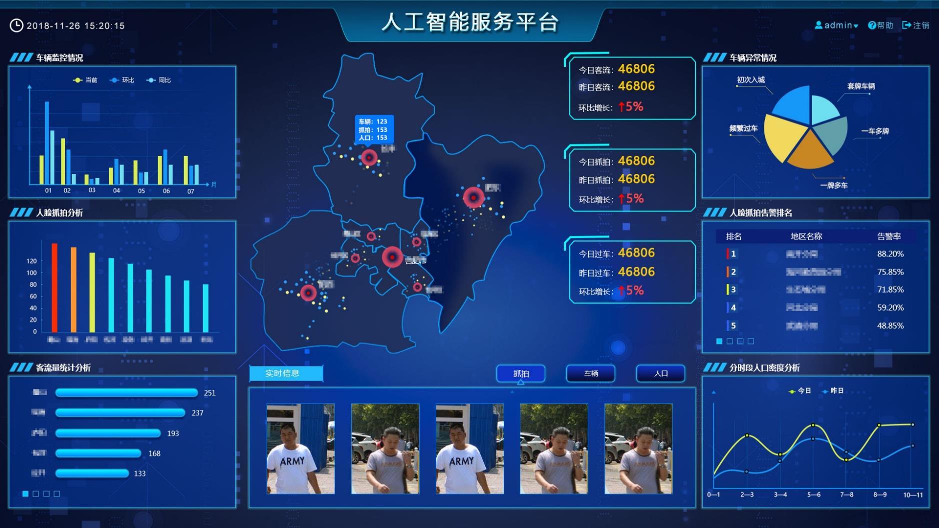 人工智能服務平臺包括人臉識別大數(shù)據(jù)子平臺、車輛大數(shù)據(jù)子平臺、客流統(tǒng)計子平臺、人群密度分析子平臺等多種子平臺。