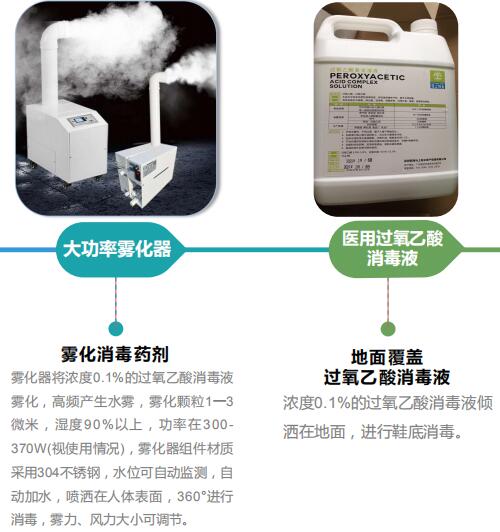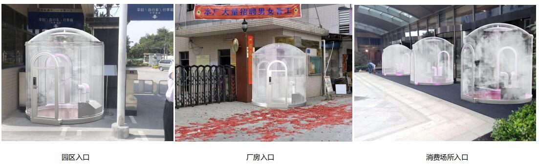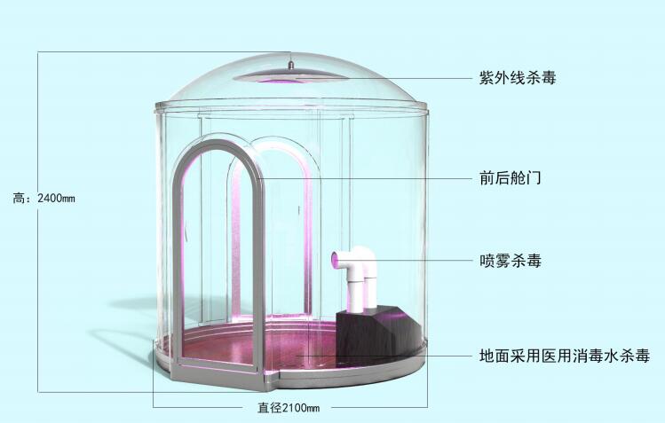 •基礎(chǔ)配置:PC透明穹頂+航空鋁底座+鋁合金門(mén)+紫外線消毒燈+大功率霧化器+過(guò)氧乙酸消毒劑