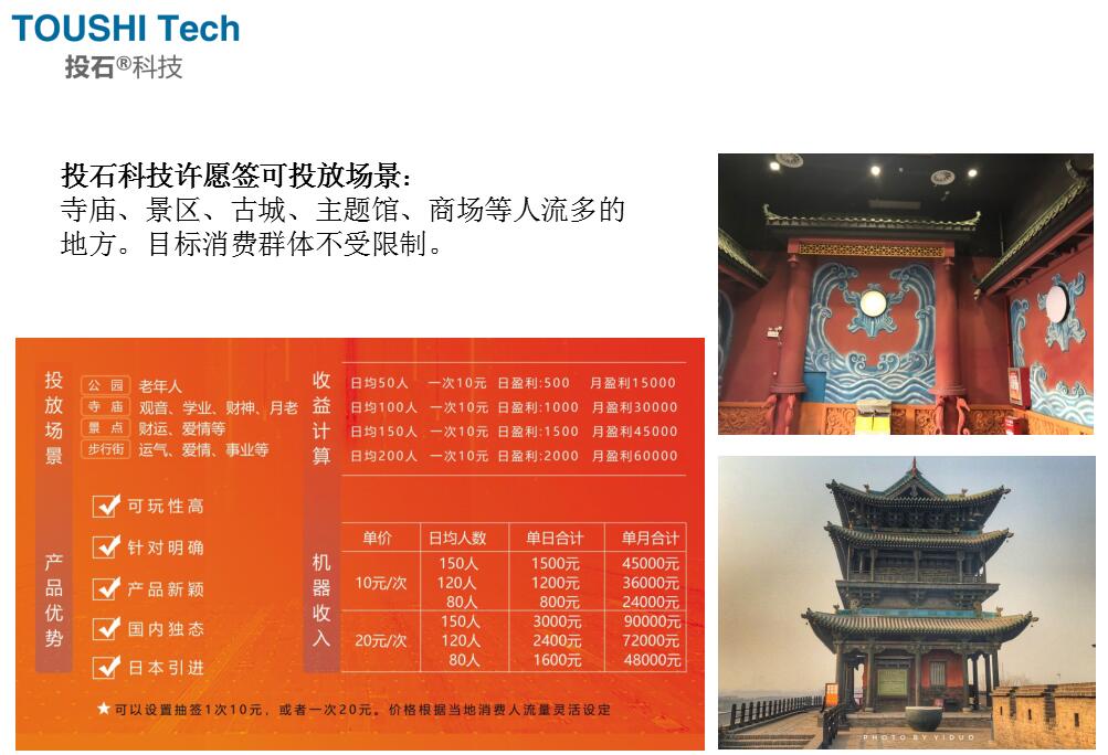 可投放場(chǎng)景:寺廟、景區(qū)、古城、主題館、商場(chǎng)等人流多的地方。