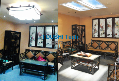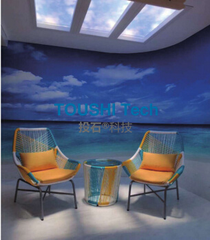 案例:家具展廳VIP會客室 投石智能系統(tǒng)模擬陽光裝置突破傳統(tǒng)照明理念,從陽光的角度改善照明。能夠在室內(nèi)模擬藍(lán)天白云,明亮陽光的自然場景。而且該產(chǎn)品容易安裝,操作簡單。陽光可塑性強(qiáng),可實現(xiàn)多種空間效果。對人的身體健康和心理健康有積極的促進(jìn)作用。