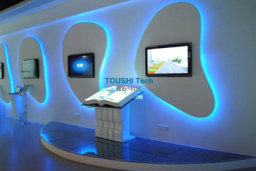 建設(shè)內(nèi)容主要是互動化營業(yè)廳一樓大廳的三通道環(huán)形融合大屏、電網(wǎng)觸摸控制式互動沙盤、背投式互動墻面投影系統(tǒng)、42寸6點(diǎn)觸摸互動桌等多媒體設(shè)備和軟件系統(tǒng)。