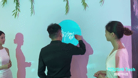 萬(wàn)科入黔十年新品發(fā)布會(huì)水波紋簽到裝置觀眾在觸摸墻上電子簽名后支持飛屏顯示,同時(shí)墻面還會(huì)出現(xiàn)動(dòng)態(tài)的互動(dòng)效果,如水波紋漂浮,名字像漂浮在水中一樣唯美。 蘇州聯(lián)發(fā)棠頌樓盤戶外環(huán)境裝置