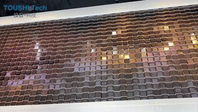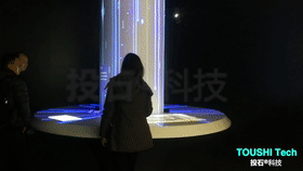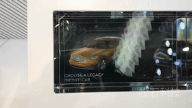 企業(yè)logo風動墻裝置由金屬片排布而成,在空中隨風飄舞,輕盈靈動、自然流暢。 2:2019上海車展英菲尼迪展位全息顯示器加leapmotion 手勢識別