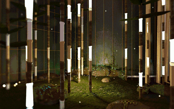一個可以移動的籃球框,這個籃球框被安裝在停車場。籃球框會通過檢測前面是否有汽車,如果有的話,籃球框會自動移動到空車位上面,這樣大家就能有位置打籃球了。 4.雷克薩斯互動竹林裝置