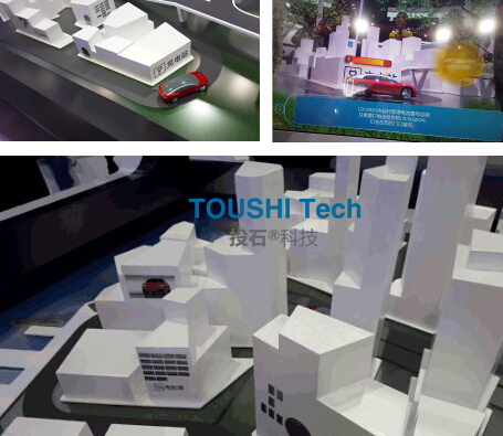 利用Ipad和腦電波裝置體驗(yàn)未來感十足的駕駛游戲。還可以通過Ipad玩AR小游戲、控制沙盤中的燈光,展示了產(chǎn)品的智能充電功能。 大眾展臺(tái)互動(dòng)(沙盤+AR+觸摸屏)