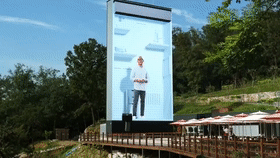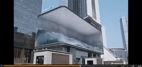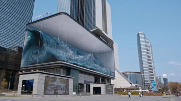 一個超酷的顯示屏裝滿了海水,而且水還在拍打翻滾,最主要水仍然是藍(lán)色的,這使得人們感受到夏天味道,非常科技感,具有非常好的視覺效果。