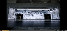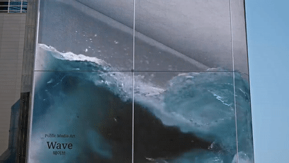 透過高達(dá)20米,長80米的巨型LED曲面熒幕,模擬了海浪在建筑內(nèi)洶涌翻攪的驚人視覺效果。 這一大片巨浪在這澎湃、蕩漾,好像隨時都能夠一頃而下,在炎熱的夏天給人清涼的快感! 3D巨幕動態(tài)媒體墻