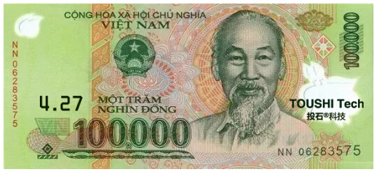 如:鈔票券文字打印:您的微笑價值100000越南盾,約等值于30人民幣,進店任意消費即可抵扣/可兌換等值小禮品。