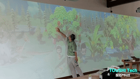 滿墻的牡丹花堆堆簇簇,當(dāng)人們從花前走過,牡丹花爭先恐后開放。 投石智能系統(tǒng)這款牡丹花感應(yīng)花開裝置將動(dòng)態(tài)的機(jī)械結(jié)構(gòu),齒輪,電機(jī),連接上控制板,加入了程序感應(yīng)系統(tǒng),通過程序的控制,以不同的分組開放。目前投石現(xiàn)貨花朵直徑:22cm和33cm,尺寸可定制。 動(dòng)物掃描畫畫互動(dòng)裝置
