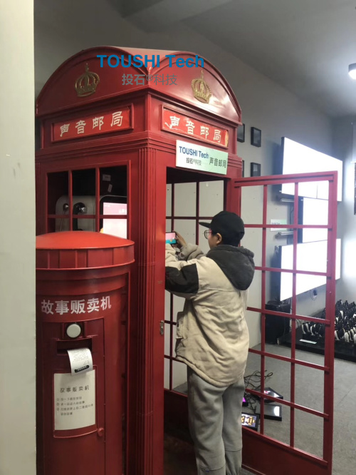 走進聲音郵局,輕啟按鈕,錄音設備便會記錄下您的聲音并自動生成一張帶有二維碼的專屬聲音明信片。以明信片作為載體,傳遞您的所見、所想、所聞、所思、所念。 聲音郵局以科技手段為您解鎖語音書信,讓傳統(tǒng)書信文化以新穎生動的形式重新回到人們的視線。 故事販賣機互動裝置
