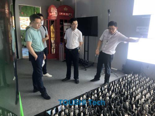 2020年7月20日,京東方科技集團(tuán)副總裁、品牌與全球市場推廣中心總經(jīng)理原烽先生一行蒞臨投石智能系統(tǒng)新媒體藝術(shù)基地參觀交流。這次主要由投石智能系統(tǒng)孫老師接待并向來訪嘉賓介紹了公司展品并一一展示效果,并且介紹互動裝置的功能及互動效果、應(yīng)用范圍等。