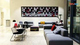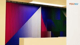 該裝置安裝在韓國JTBC休息大廳的墻上,由144個動力模塊組成,每個模塊可顯示25種顏色。機械式翻頁屏“唰唰唰”的聲音回蕩填滿整個休息區(qū),讓這空間充滿生機。 韓國JTBC三角屏(Tri-Wall)裝置