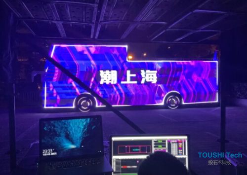 2020年10月,南京投石智能系統(tǒng)為第三屆中國(guó)國(guó)際進(jìn)口博覽會(huì)獅王展位提供感應(yīng)動(dòng)態(tài)機(jī)械花裝置。2020進(jìn)博會(huì)獅王展位在空間的不同區(qū)域設(shè)置了8朵機(jī)械花開裝置,分別是直徑50cm和直徑30cm各4朵。為了滿足上海進(jìn)博會(huì)對(duì)材質(zhì)的防火要求,投石智能系統(tǒng)特地采用進(jìn)口阻燃紙作為開合的花瓣材質(zhì),通過防火和染色、機(jī)械控制三道工序,實(shí)現(xiàn)了難燃性的防火要求。 2、央視頻"流動(dòng)的海派咖啡館"大巴車mapping投影