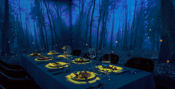 藝術(shù)無(wú)間隙地融入就餐環(huán)境中。一場(chǎng)視覺和味覺的雙重盛宴。如果在這樣的黑科技餐廳用餐,每一道創(chuàng)意料理搭配不同的感官體驗(yàn),不要說(shuō)吃得飽不飽,不一樣的視覺盛宴都覺得值,有著無(wú)與倫比的儀式感。 投石案例1:南京水游城LL投影餐廳