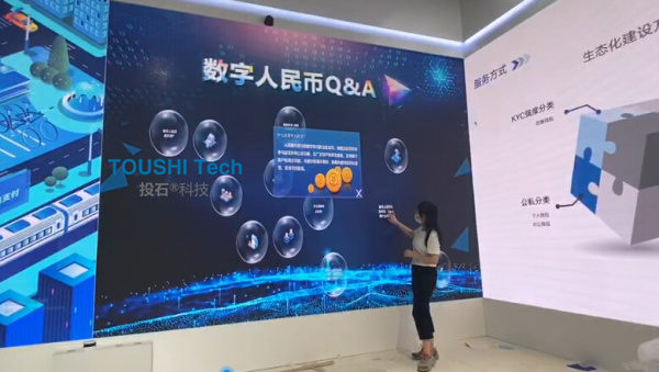 2020年9月4日-9日,在2020年中國(guó)國(guó)際服務(wù)貿(mào)易交易會(huì)展位上,投石智能系統(tǒng)提供氣泡觸摸屏,體感翻牌,雷達(dá)觸摸墻、模擬城市觸摸互動(dòng)等互動(dòng)裝置。 氣泡觸摸屏
