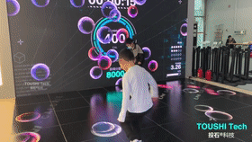現(xiàn)場(chǎng)還有數(shù)字水簾裝置包括計(jì)算機(jī)、一儲(chǔ)水箱、一架設(shè)于該儲(chǔ)水箱之上的支架以及一控制模塊等組成。儲(chǔ)水箱內(nèi)裝設(shè)有水泵和燈光陣列,計(jì)算機(jī)為以根據(jù)所需要顯示的圖形或文字輸出指令至控制板,即而該控制板按照該指令去控制電磁閥陣列中電磁閥的通斷,進(jìn)而控制噴頭中下落的水柱長(zhǎng)短變化,從而形成圖形和文字。投石智能系統(tǒng)數(shù)字水幕裝置結(jié)構(gòu)簡(jiǎn)單,實(shí)現(xiàn)方便,具有很強(qiáng)的實(shí)用性。 十、雷達(dá)觸摸互動(dòng)墻