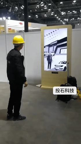 案例:2019上海車展五菱寶駿品牌機(jī)械體感翻轉(zhuǎn)磁力屏 三、42寸270°全息展示柜互動(dòng)裝置:一種將三維畫(huà)面懸浮在柜體實(shí)景中的半空中成像系統(tǒng)。