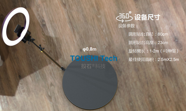 最佳使用面積:2.5mX2.5m 360度旋轉(zhuǎn)拍攝臺(tái)裝置核心優(yōu)勢(shì):