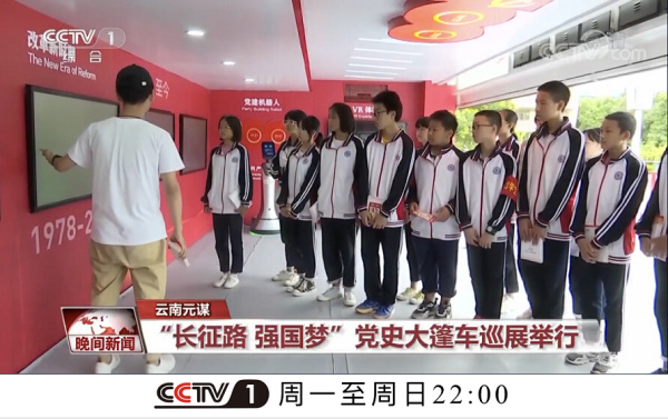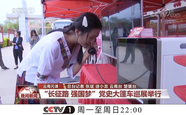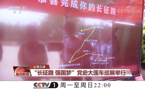 央視CCTV1綜合頻道報道:云南站“長征路強國夢”黨史大篷車巡展活動