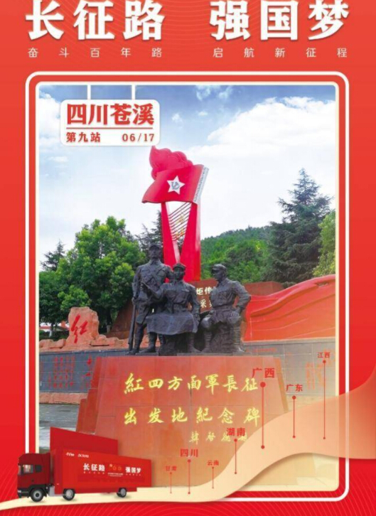 1933年春,中國工農(nóng)紅軍第四方面軍為配合中央紅軍北上抗日,奉命渡江西進。進入蒼溪后的紅四方面軍,轉戰(zhàn)近三年,發(fā)動大小戰(zhàn)斗百余次。1935年3月,紅四方面軍以蒼溪塔山灣為主渡口,分三路強渡嘉陵江,打破了國民黨軍“困我于江東”的企圖,實現(xiàn)了“打過嘉陵江,迎接黨中央”的戰(zhàn)略目的,紅四方面軍由此踏上了波瀾壯闊的長征之旅。 如今,在蒼溪紅軍渡紀念館里,仍保存著86年前的石刻標語口號:“強渡嘉陵江,迎接黨中央”。這片土地,留下了一個個壯懷激烈的革命故事,讓人時時刻刻都能感受到催人奮進的力量,而大篷車也將在這里記錄更多紅色之聲。