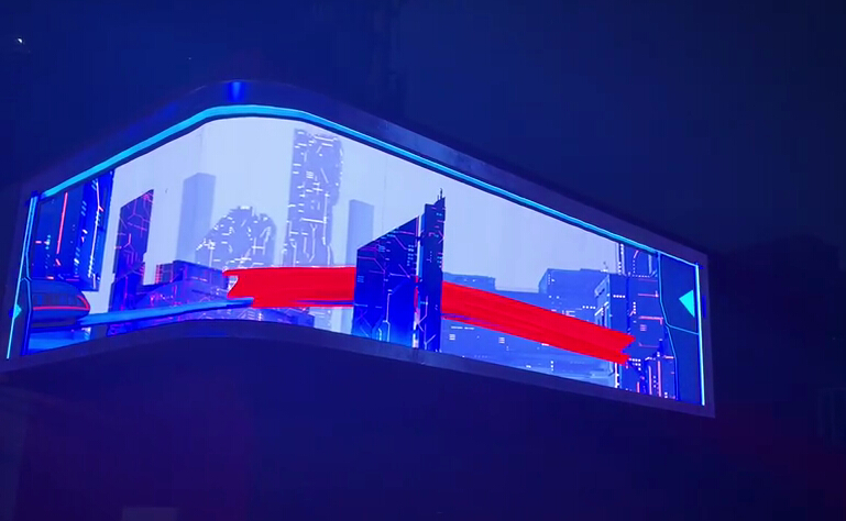 投石智能系統(tǒng)裸眼3D技術主創(chuàng)團隊對戶外弧形裸眼3D屏畫面內容做了解析介紹::