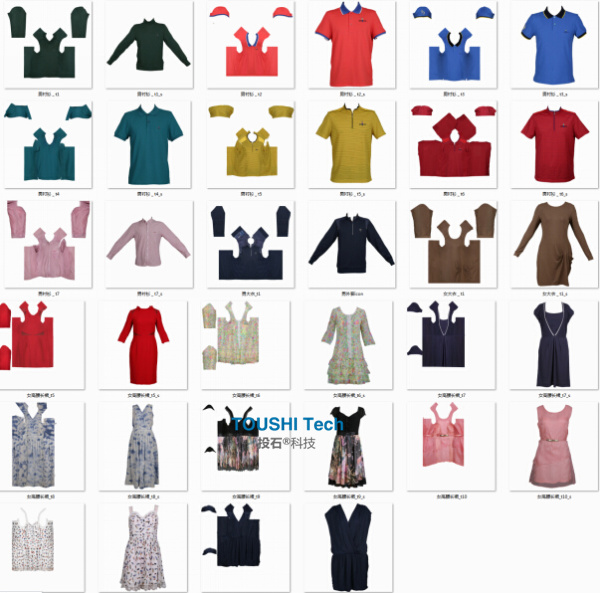 三維服飾模型后臺(tái)管理模塊,目前是以通用款為主,T恤、襯衫、大衣、裙裝,支持定制。