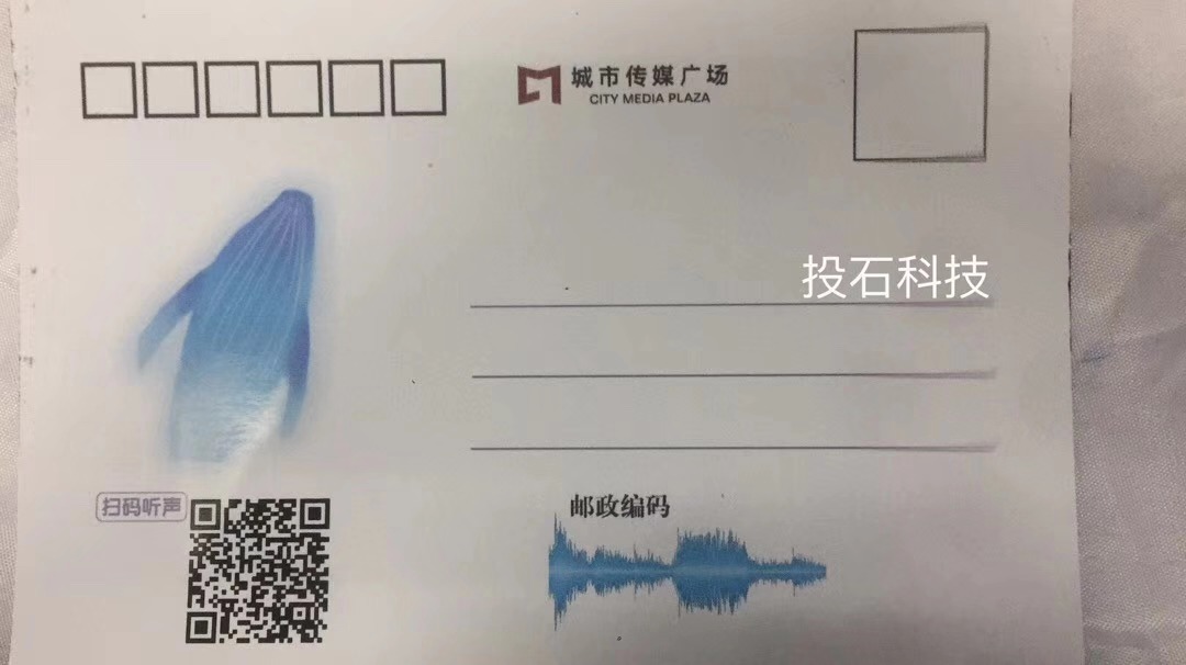 投石智能系統(tǒng)將聲音與明信片結(jié)合成一張可以郵寄聲音的明信片互動(dòng)裝置,用錄音設(shè)備記錄你的心情或者祝福,生成一張帶有二維碼的聲音明信片,打印蓋上郵戳,帶著思念,寄往遠(yuǎn)方的親人和朋友。
