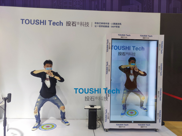 和自己對(duì)話的人像復(fù)刻機(jī)互動(dòng)裝置。投石智能系統(tǒng)的人像復(fù)刻機(jī)就是一個(gè)有趣互動(dòng)裝置。該人像復(fù)刻機(jī)互動(dòng)裝置采用3D寫實(shí)的創(chuàng)作概念,通過(guò)4K高清攝像頭識(shí)別及后臺(tái)軟件處理,將現(xiàn)實(shí)人像與虛擬3D影像共處于同一時(shí)間與空間,以此為觀眾達(dá)到非凡的視覺(jué)感官體驗(yàn)。該交互裝置支持多影像類型,不僅支持真人的視頻識(shí)別,同時(shí)也支持3D寫實(shí)和卡通風(fēng)格的合成。在真人識(shí)別模式下,體驗(yàn)者站在鏡頭前在設(shè)置好的時(shí)間內(nèi)擺出不同的POSE,攝像頭識(shí)別手勢(shì)、肢體動(dòng)作等,將其反饋至電腦終端真實(shí)地“復(fù)制”體驗(yàn)者并呈現(xiàn)1比1效果的3D影像。 產(chǎn)品結(jié)構(gòu):