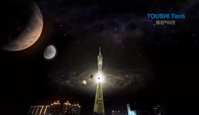 建黨百年投石智能系統(tǒng)獻(xiàn)禮中央電視塔AR燈光秀百花綻放