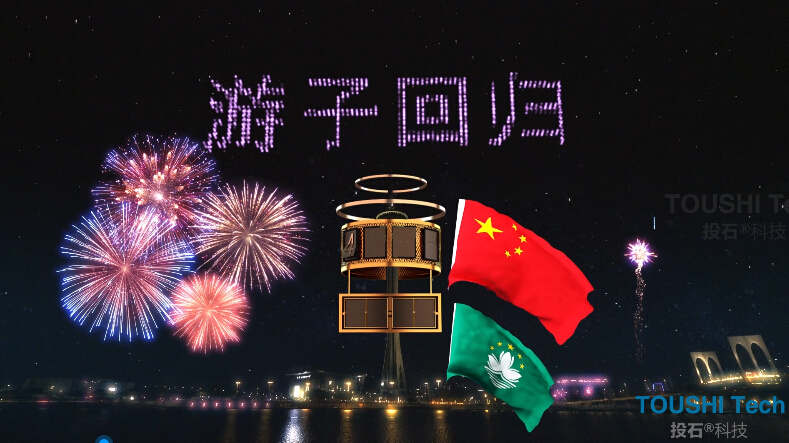 本次廣州塔AR燈光秀,正是廣州引領(lǐng)“上云用數(shù)賦智”科技文化創(chuàng)新風(fēng)氣之先的一種表現(xiàn)。 本次AR秀在廣東旅游博覽會(huì)中得到領(lǐng)導(dǎo)高度贊揚(yáng) 參觀者駐足拍攝AR秀畫(huà)面 除本次廣州塔AR秀外,投石智能系統(tǒng)以中央電視塔、澳門(mén)旅游塔為載體,制作了兩場(chǎng)大型AR秀。 中央電視塔AR秀 澳門(mén)旅游塔AR秀