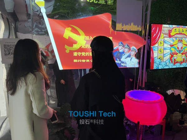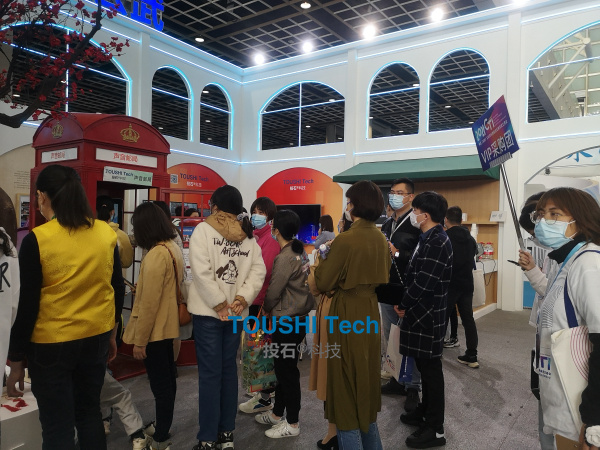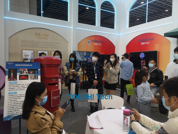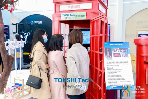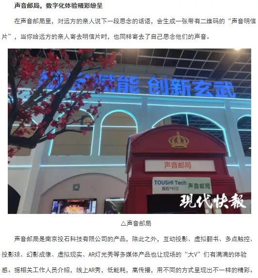 圖:投石智能系統(tǒng)聲音郵局裝置被現(xiàn)代快報(bào)媒體報(bào)道 圖:玄武展區(qū)投石展位現(xiàn)場游客參觀體驗(yàn)打卡