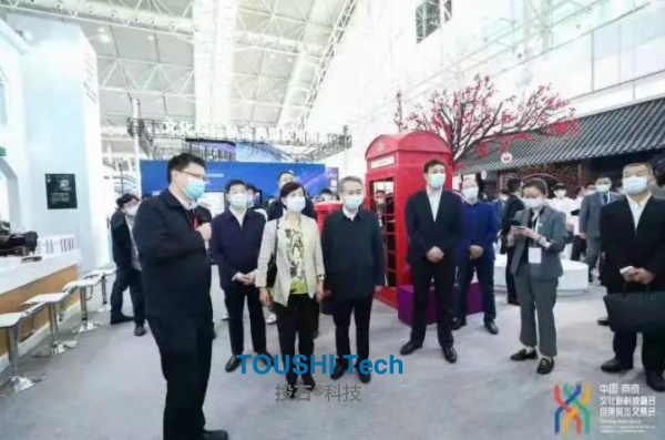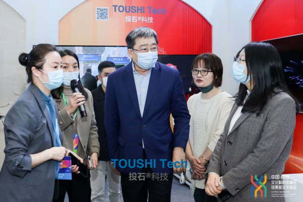 隨后一行領(lǐng)導(dǎo)、媒體大V們又去融交匯展館現(xiàn)場聽取了玄武區(qū)文化科技融合發(fā)展情況匯報(bào),對投石智能系統(tǒng)等參展企業(yè)致力科技創(chuàng)新給予肯定。