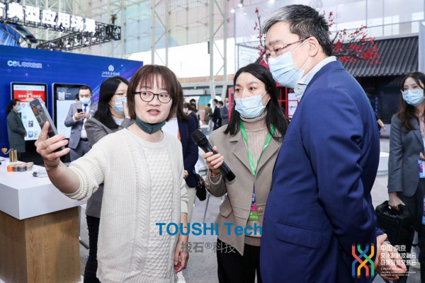 圖:科學(xué)技術(shù)部高新技術(shù)司副司長續(xù)超前視察玄武展區(qū)投石智能系統(tǒng)展位