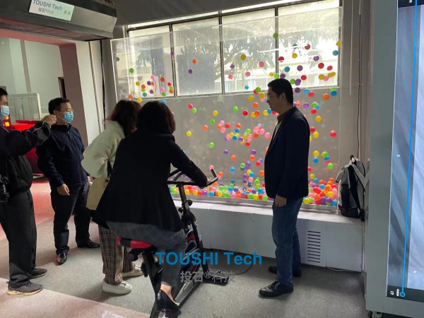 圖:媒體大V們體驗(yàn)海洋球騎行互動裝置