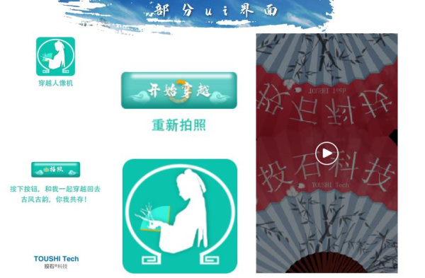 關(guān)鍵詞:人像復(fù)刻/穿越/拍照/互動裝置 投石將科技與國潮結(jié)合,采用現(xiàn)代科技來完成體驗(yàn)者穿越到古代的幻想。穿漢服的體驗(yàn)誰不想擁有。