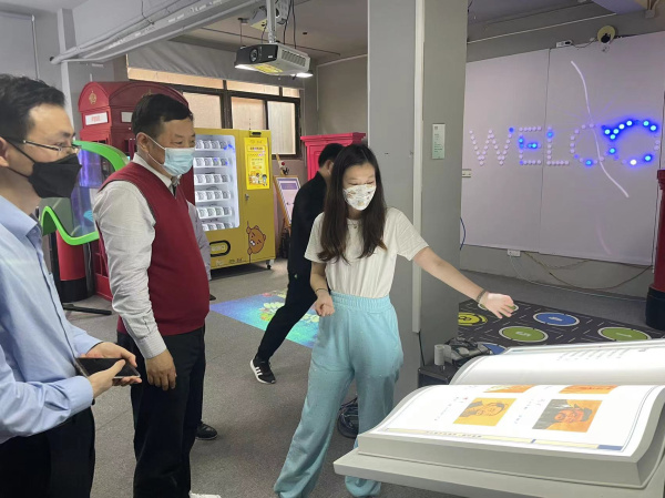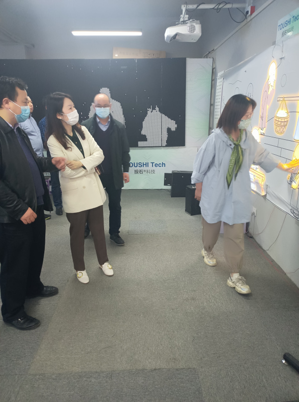 溫局長(zhǎng)一行參觀了投石智能系統(tǒng)的新媒體藝術(shù)展廳,詳細(xì)了解了互動(dòng)裝置的功能及在項(xiàng)目中的應(yīng)用,并一一參與每個(gè)裝置進(jìn)行互動(dòng)體驗(yàn),表示公司產(chǎn)品創(chuàng)意很好,充分肯定了投石智能系統(tǒng)近年取得的科技成果。 淮安市政府駐南京辦事處領(lǐng)導(dǎo)蒞臨考察