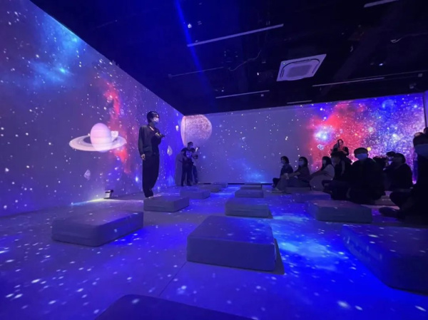 沉浸式互動(dòng)設(shè)計(jì)實(shí)驗(yàn)室旨在實(shí)現(xiàn)新媒體游戲和影像的展示和研究,同學(xué)們?cè)诖四苎菔居耙曌髌泛突?dòng)游戲。同時(shí),該實(shí)驗(yàn)室為動(dòng)畫專業(yè)知識(shí)融入產(chǎn)學(xué)活動(dòng)提供有效途徑,為新媒體舞臺(tái)設(shè)計(jì)、未來影像、創(chuàng)新互動(dòng)游戲開發(fā)及視覺傳達(dá)的動(dòng)態(tài)海報(bào)提供了創(chuàng)新平臺(tái)。 ↑師生體驗(yàn)沉浸式互動(dòng)空間↓