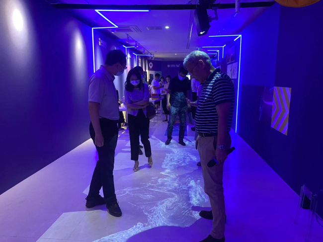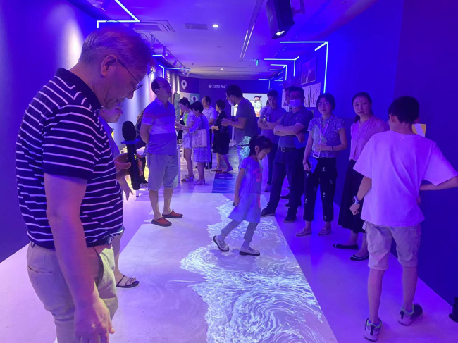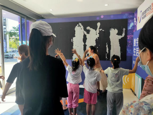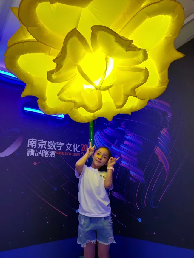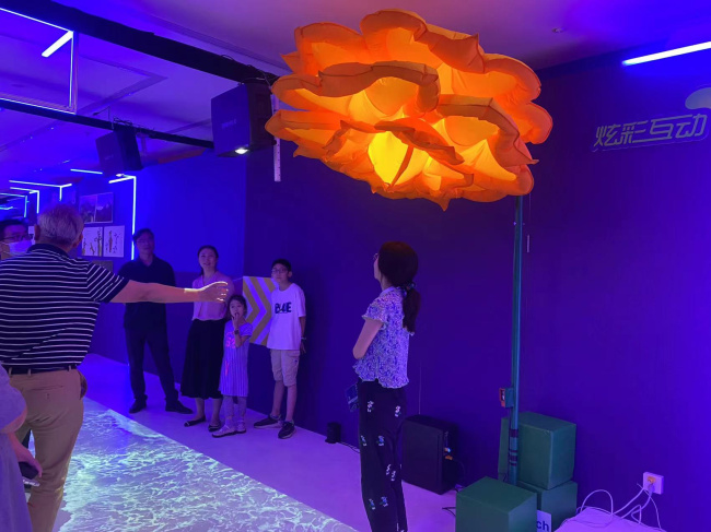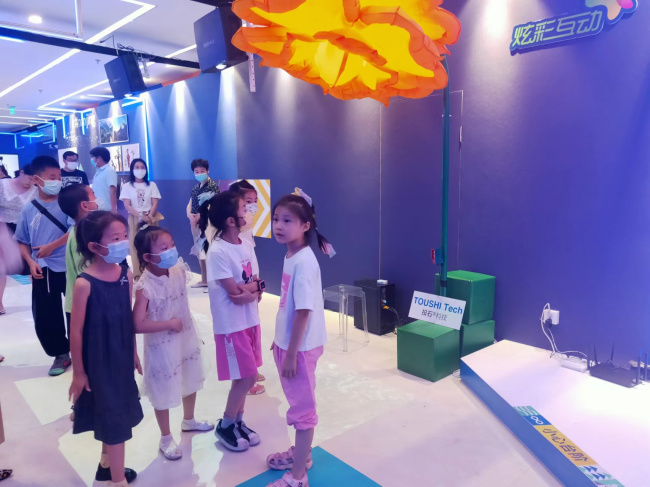 在數(shù)字文化精品路演活動現(xiàn)場,可以看到投石智能系統(tǒng)展位的感應(yīng)花開裝置,主要借助編程技術(shù),當(dāng)有人路過,一旁的燈飾會緩緩“張開”,如花朵盛放,迎接路過的觀眾…… 圖:現(xiàn)代快報報道路演活動感應(yīng)花 展會現(xiàn)場圖:大朋友小朋友體驗感應(yīng)花開 一條光影河流在腳下“流淌”,似置身戶外;