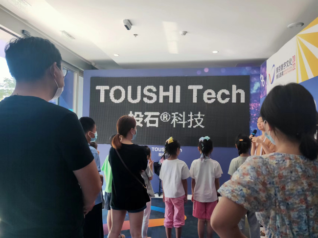 在數(shù)字文化精品路演活動現(xiàn)場,可以看到投石智能系統(tǒng)展位的感應(yīng)花開裝置,主要借助編程技術(shù),當(dāng)有人路過,一旁的燈飾會緩緩“張開”,如花朵盛放,迎接路過的觀眾…… 圖:現(xiàn)代快報報道路演活動感應(yīng)花 展會現(xiàn)場圖:大朋友小朋友體驗感應(yīng)花開