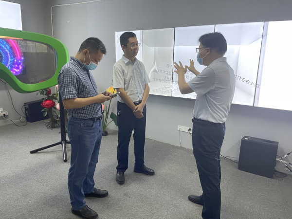 2022年8月26日,南京玄武區(qū)委常委、玄武區(qū)人民政府黨組成員、副區(qū)長馬千山,玄武區(qū)科技局局長史慶鋒一行領(lǐng)導(dǎo)蒞臨投石智能系統(tǒng)新媒體藝術(shù)展廳參觀考察。南京市玄武區(qū)政協(xié)委員、南京投石智能系統(tǒng)有限公司董事長孫峰峰熱情接待并且出席活動。