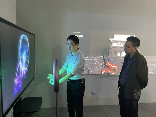 在投石新媒體藝術(shù)展廳,孫峰峰向朱天龍一行領(lǐng)導(dǎo)詳細(xì)介紹了公司的發(fā)展現(xiàn)狀,演示了公司展品互動體驗效果,并且介紹了公司歷年來行業(yè)創(chuàng)新項目和公司取得的優(yōu)秀案例情況。目前公司產(chǎn)品已廣泛應(yīng)用到智慧景觀、智慧公園、文旅夜游、公共空間等消費場景中,并取得了一定的行業(yè)影響力。