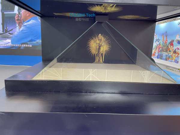 投石智能系統(tǒng)270度全息柜位于B館連云港展區(qū)。這是一種新型的展覽展示技術,通過光學的原理將實物和虛擬的影像融合在一起,形成一種立體的視覺感受效果。這種技術可以應用于商場、博物館等場所進行產(chǎn)品的陳列和宣傳。