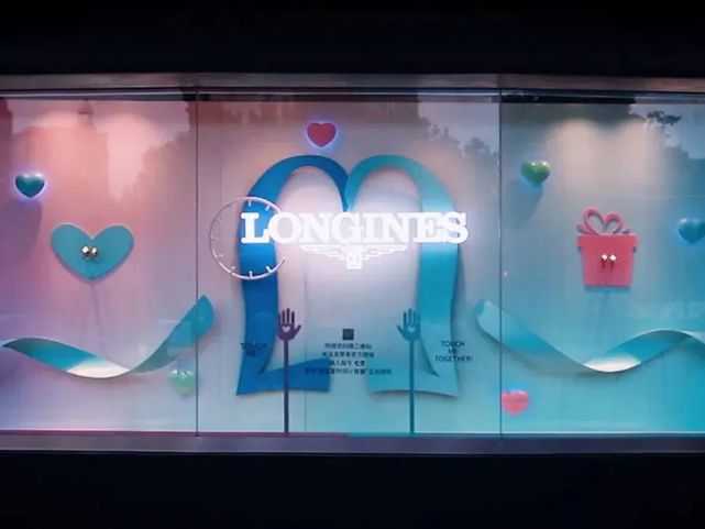在浪琴的櫥窗中,以分開的愛心為櫥窗背景,位于愛心下方的兩個手掌裝飾,便是整個互動櫥窗的感應(yīng)點,當(dāng)戀人們同時觸摸位于櫥窗兩邊的手掌,掌心的溫度帶動了燈帶能量傳送,匯聚到以"浪琴"為標(biāo)志的雙“L”愛心中去,最終伴隨者戀人的熱情輸送,雙“L”組合成愛心,同時并添有絢麗的燈光活躍現(xiàn)場氣氛,給暖暖的情人節(jié)再度添溫。