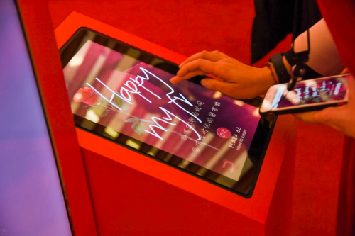 7.終端互動觸摸屏可傳遞寫字字樣的圖片或字跡路徑給到自動寫字氣球裝置。 南京投石案例:2021元祖食品七夕手繪氣球互動裝置