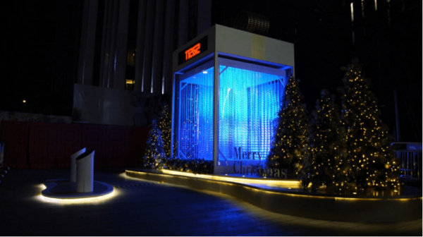 當(dāng)表白者對喇叭話筒說話,系統(tǒng)會實時識別內(nèi)容并轉(zhuǎn)換成立體文字從大屏幕上彈出并一層層疊加。將立體文字賦予獨特的層疊動感,更顯得生動,同時更好提升了趣味互動感。該裝置也可將識別的語音轉(zhuǎn)換成特定的圖案,會顯示不同的視覺效果。
