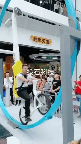 游戲參與流程:參與者在工作人員的幫助下系好安全帶、帶上安全帽和肩部保護(hù)設(shè)備,并且檢查一下設(shè)備是否佩戴完全,之后便可開(kāi)始騎行。參與者在環(huán)形軌道上旋轉(zhuǎn)騎行到達(dá)最高點(diǎn)后要保持繼續(xù)踏動(dòng)自行車,回到原點(diǎn)后再停止踏動(dòng),等自行車平穩(wěn)停在軌道上,解除防護(hù)設(shè)備,安全下車,回到地面。一次體驗(yàn)結(jié)束。